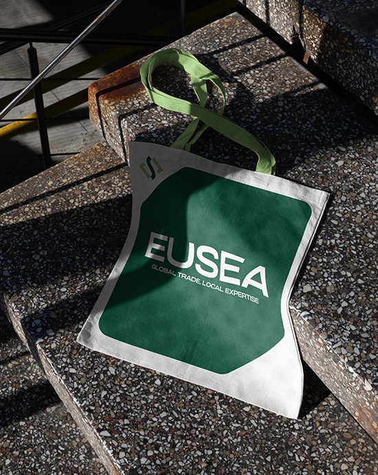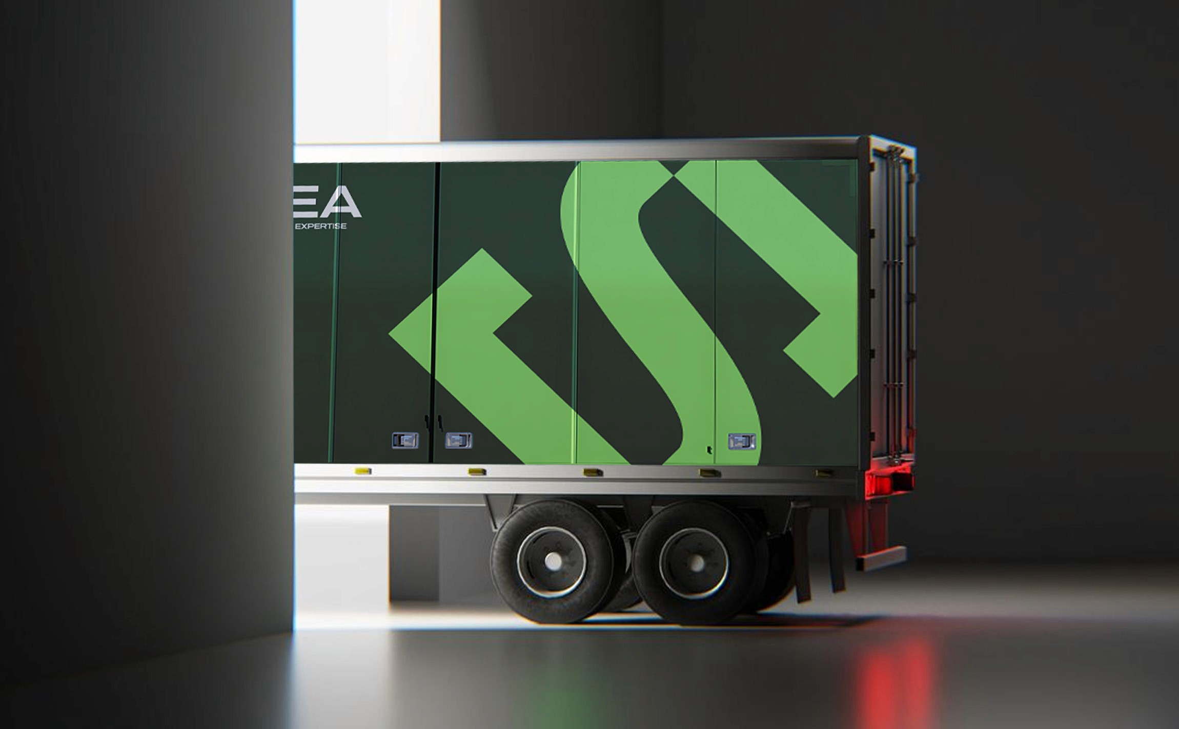 The logo is based on the letter “S” with arrows on both sides. It shows the movement of goods between Europe and Southeast Asia. The green color represents cold chain logistics and fresh food transport. The brand uses simple shapes, colors, and patterns from the logo to create a clear and consistent look across all designs and social media.